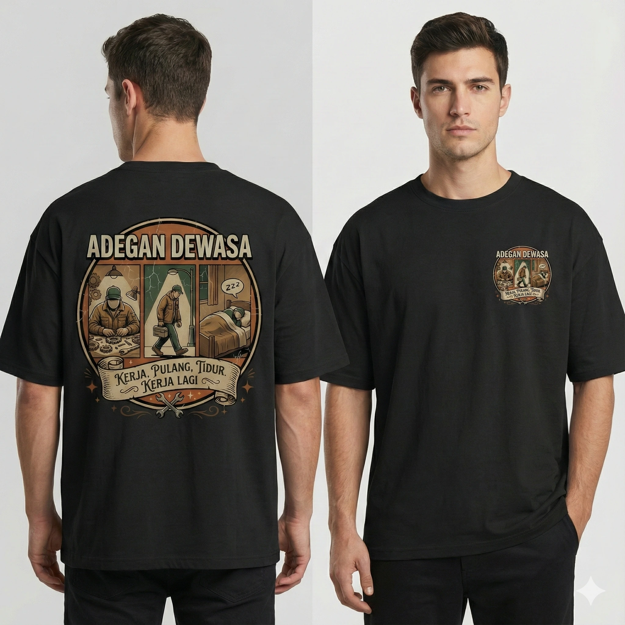 Setiap detailnya diperhatikanâmulai dari jahitan rantai yang rapi dan kuat, sampai sablon Plastisol/DTF yang bikin warna terlihat lebih hidup dan tahan lama.